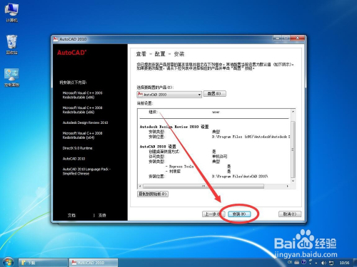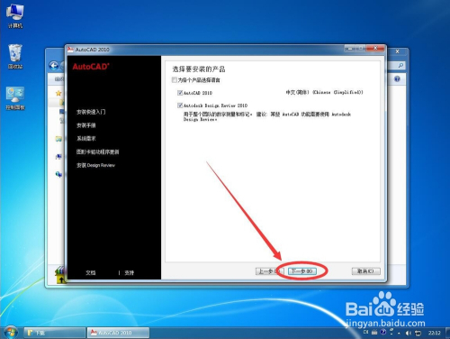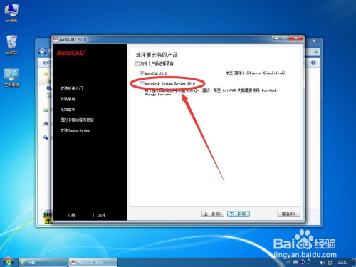 可以将“Autodesk Design Review 2010”也勾选上安装