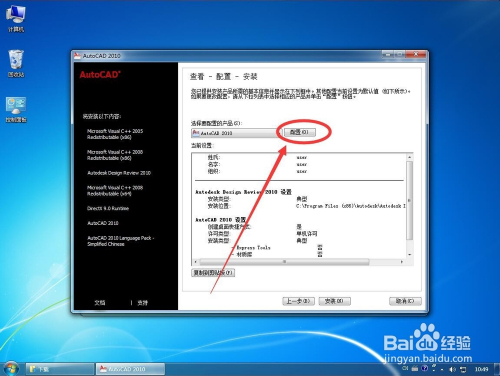 进入选摘要安装的产物界面,默认勾选安装的是AutoCAD 2010