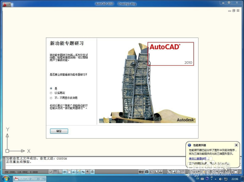 点击跳事后,打消“AutoCAD 2010下次启动时提醒我”前面的勾选