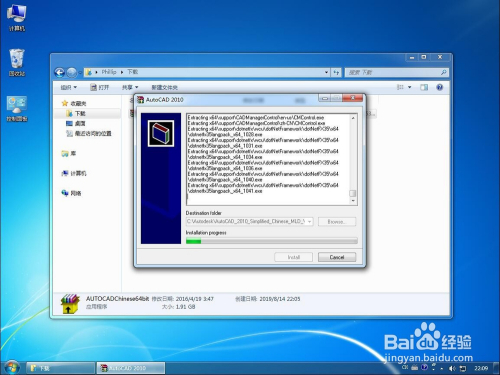 注重CAD2010安装文件是自解压软件,双击后会先起头主动解压
