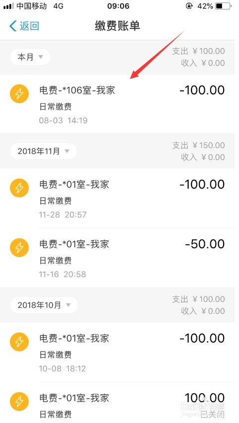 然后就可以查看到每月的缴费账单,包罗缴费时候和缴费金额,如图所示。