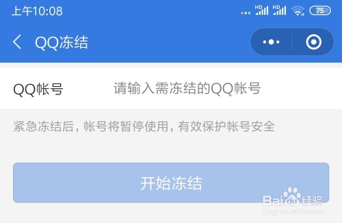 - 3输入需要冻结的qq账号今后,点击下方的“起头冻结”。