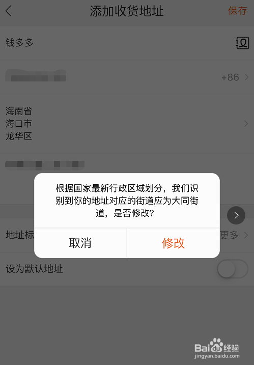 有的时辰你填写的地址会弹出这个街道变动的提醒,你若是不确定本身的位置可以选择打消,或者选择点窜也是可以的,对你现实收货的地址影响不大;