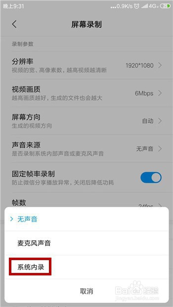 可以设置的来历包罗麦克风和手机内部,这就是关头地点了,好比我们选择了系统内录,那我们措辞的声音必定是没有的,所以要按照要求选择。