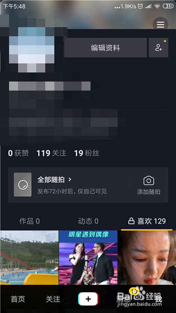 打开后会发现有红色的星星,这表白是我们点赞和看过的视频。