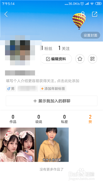 快手的小我本家儿页里分为四类,我们需要的是点击【赞】。