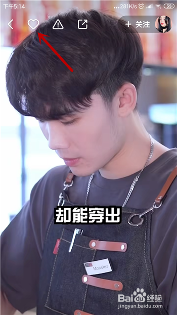 打开后视频的上方有红色的爱心,点击这个爱心,如图。