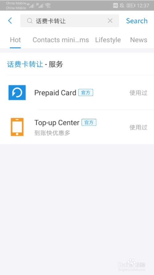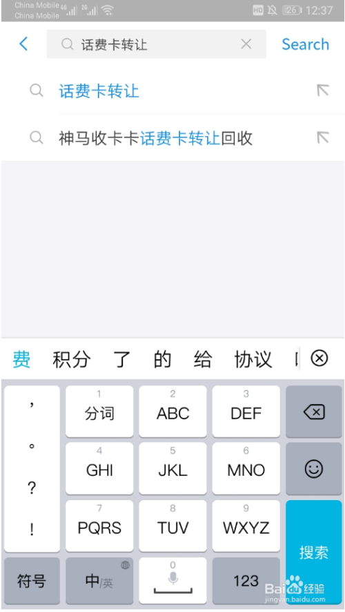 在搜索框中点输入“话费卡让渡”