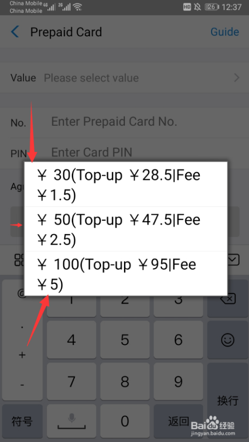 点击进入我们要进行选择需要兑换现金的面值,话费卡的面值有30,50,100元的具体你手里的话费卡进行选择就可以了