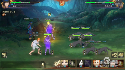 接着来到第三回合第四波狼,开局重吾奥义一只狼(尽量奥义排在后面而排在一横的),连击后用手鞠奥义加大蛇丸奥义