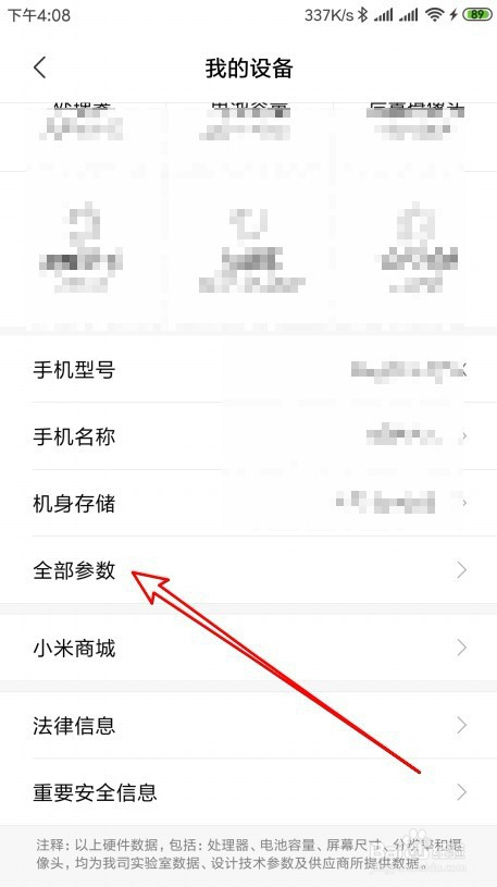 然后在打开的我的设备的页面中,点击“全数参数”的菜单项。