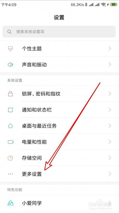 返回到小米6手机的设置页面,点击页面中的“更多设置”的菜单项。