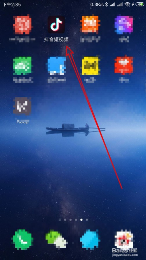 首先解锁手机屏幕,在桌面上摆布的滑动,找到安装好的“抖音短视频”的图标。