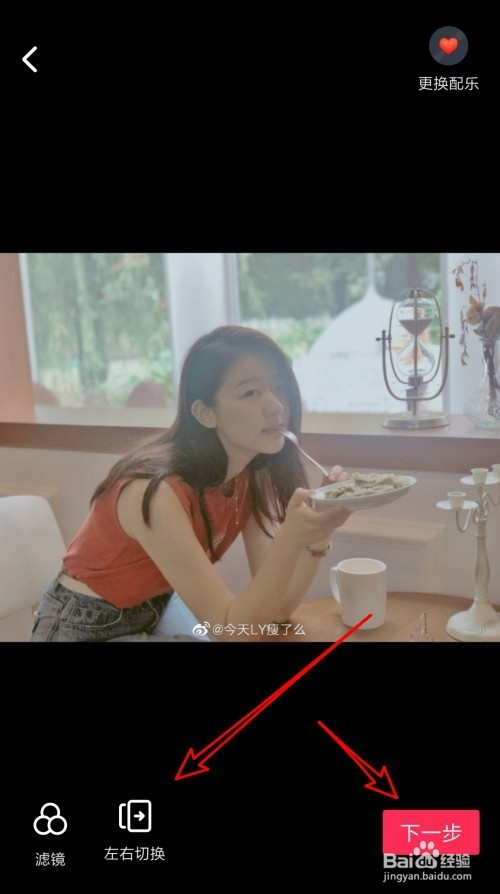这时就会进入抖音把照片转换当作视频的编纂页面,在页面中我们可以对照片进行编纂,编纂完当作后点击右下角的“下一步”按钮。