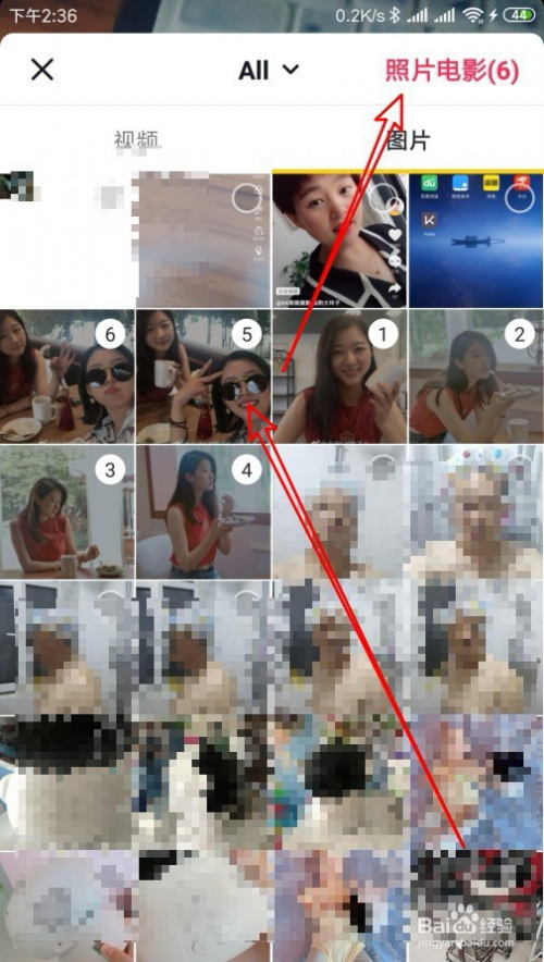 接下来在打开的图片列表中,勾选要建造视频的图片,然后点击右上角的“照片片子”的按钮。