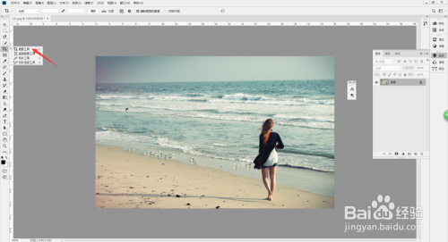 打开PS软件,ctrl+o打开照片,点击裁剪东西。
