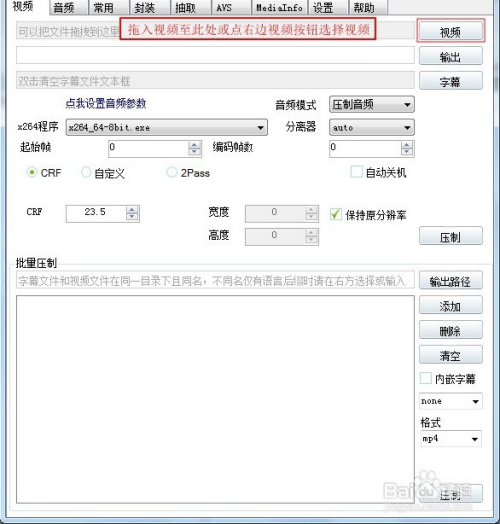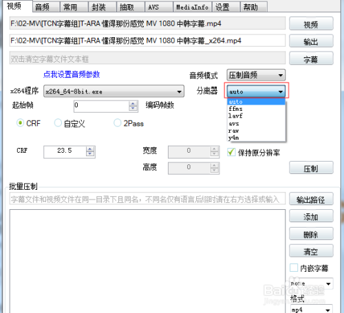 5、选择压制方式(若是不知道如何设置建议选CRF,若是选2pass码率建议选择1000Kbps)