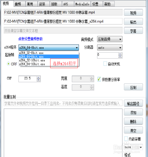 2、选择x264程序,32位系统建议选x264_32-8bit.exe,64位系统建议选x264_64-8bit.exe