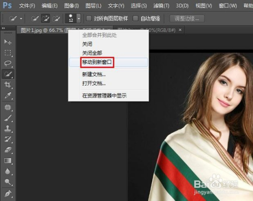 第六步:在人物图片题目处单击鼠标右键选择“移动到新窗口”,这样能把窗口缩小。