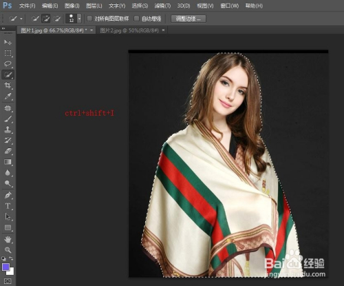 第三步:按快捷键Ctrl+shift+I键,反标的目的拔取,选中要抠取的人物区域。
