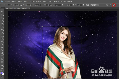 第八步:按快捷键Ctrl+T键可以调整抠图的大小,调整完当作后,单击“√”按钮。