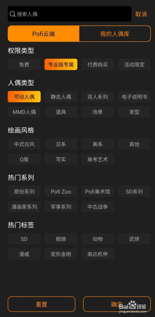 也可以点击搜索框上方的“pofi”,点击“全数内容”,也可以找到相对应的人偶。