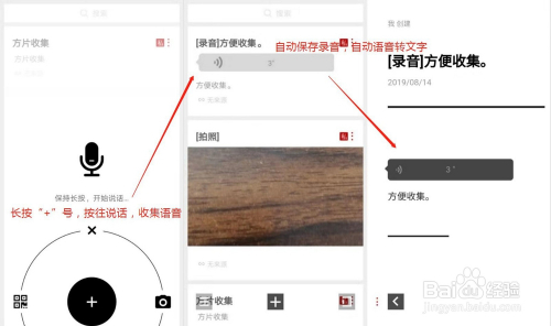 长按“+”号,并按住措辞,进行语音收集。主动保留灌音,主动语音转文字,趁热打铁。