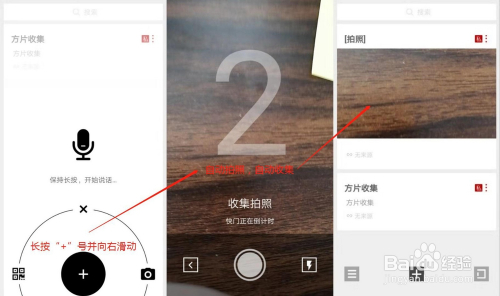 长按“+”号,并标的目的右滑动,进行摄影收集。整个过程只需3秒,主动摄影主动收集。