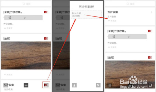 复制内容后打开 方片收集 APP,点击右下角的按钮,就会弹出“汗青剪切板”侧边栏,在这里就可以看到适才复制的内容了。然后只要将剪切板中的内容拖出来就可以了。
