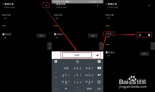 在“办理分类”页面点击右上角的“+”号,可以建立分类,建立好的分类撑持重定名和删除分类。方片收集默认有“未分类”和“收受接管站”二个分类,且无法删除。