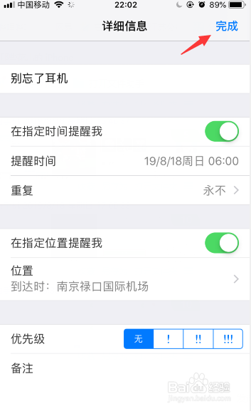 之后,点击完当作,这样提醒事项就当作功的建立完当作了。