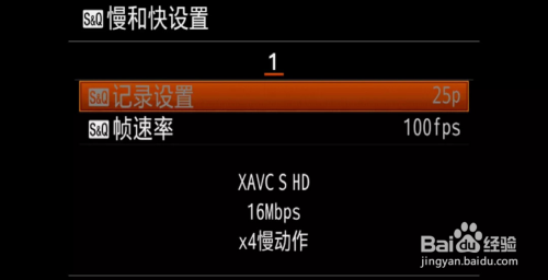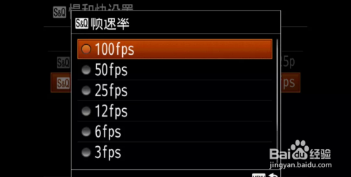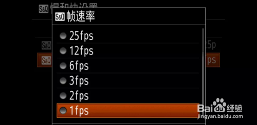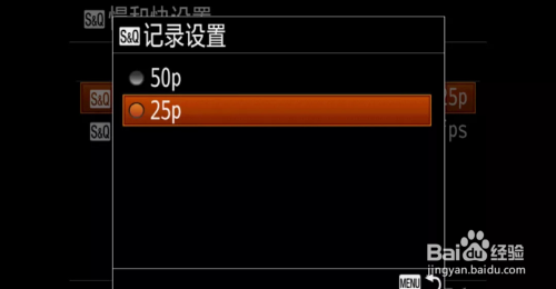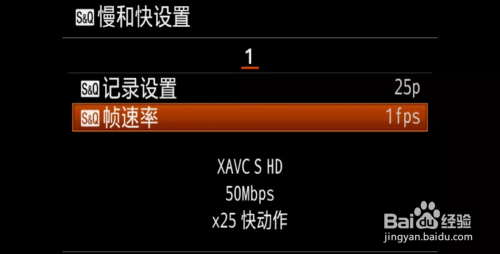 进入S&Q帧速度,可以看到帧速度从100fps到1fps选择,进入记实设置,可以选择25P或50P。