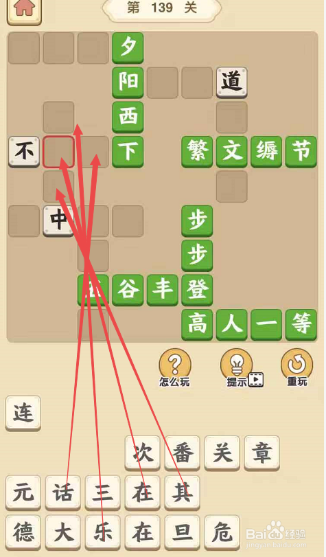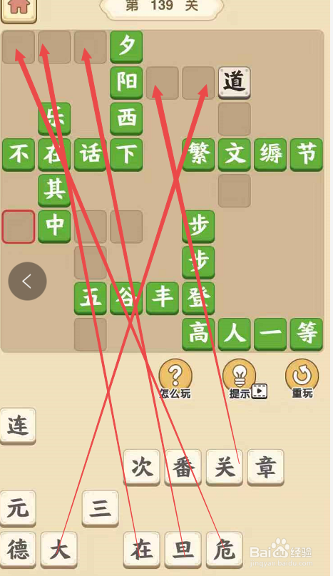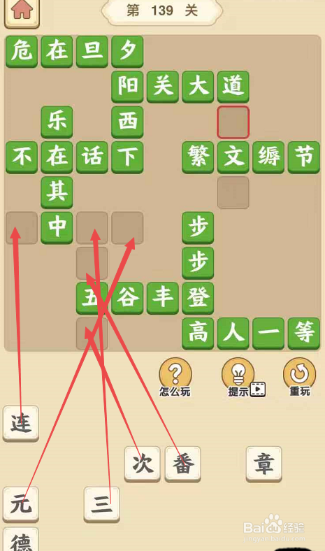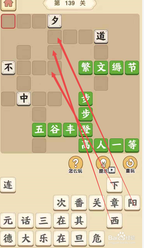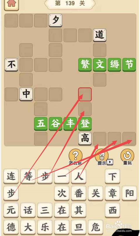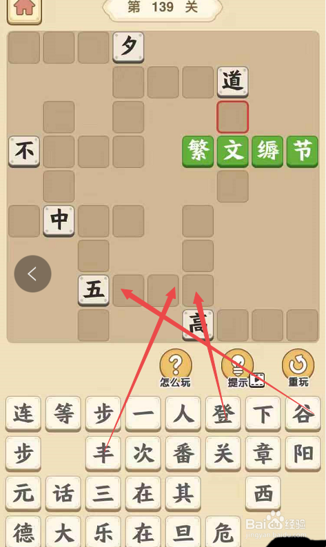 点击当作语小秀才手游,起头第一百三十九关的挑战。第一步,先将页面右侧的当作语“繁文缛节”填好,然后将“谷”填在“五”之后,将“丰登”填在“谷”之后,构成当作语“五谷丰登”。