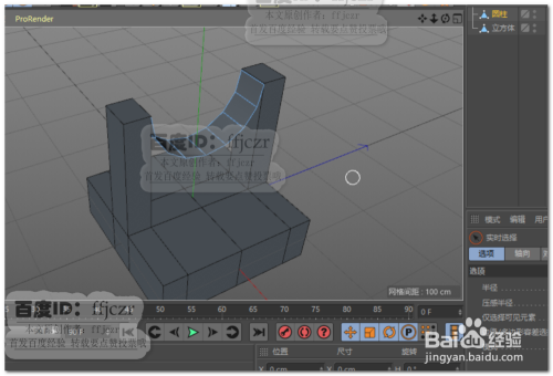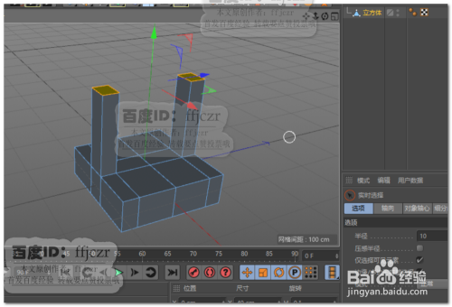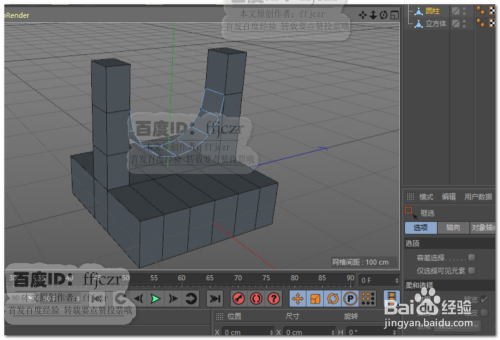 将上步建立的立方体转为可编纂对象,对立方体横标的目的添加三组轮回边,纵标的目的添加二组轮回边;面模式中选中轮回边朋分出来的两个面标的目的上挤压出两立柱。如图所示。