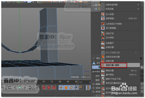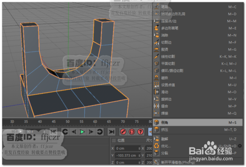 将圆柱面调整到要实现倒角的位置,将圆柱面与立方体毗连对象+删除;选中圆柱面相对于立方体的面,将其删除。如图所示。