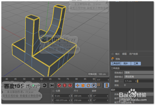 边模式中选中模子所有轮廓边进行倒角,偏移值为2,斜角更改为修补。对模子添加细分曲面。