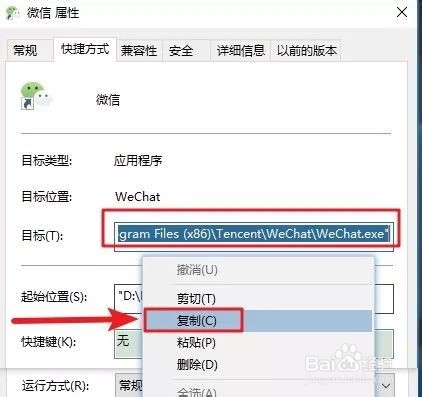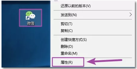 步调1:鼠标右击微信快捷体例图标选择『属性』。