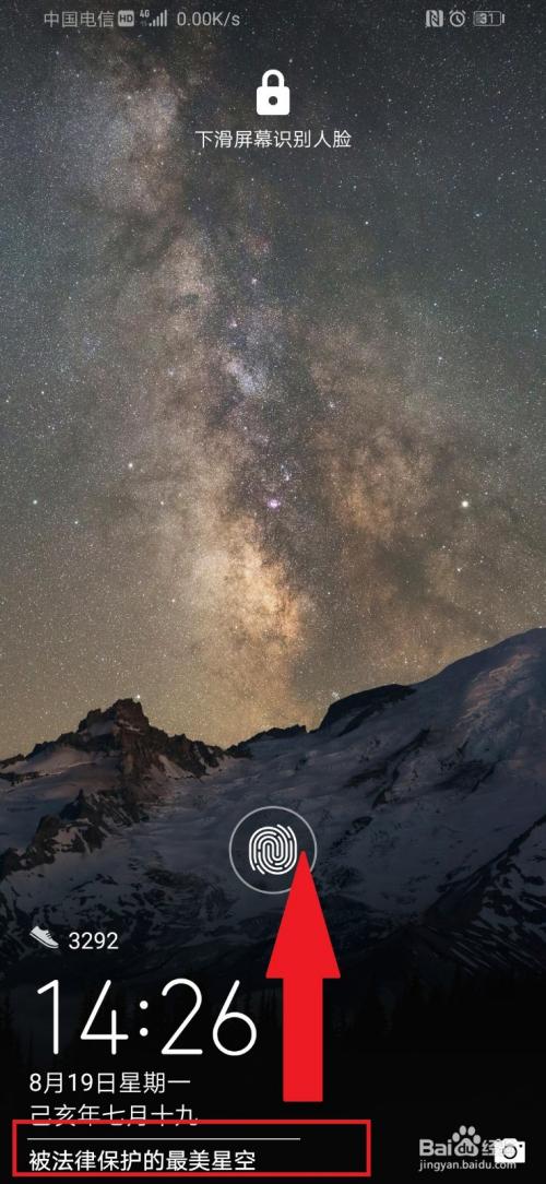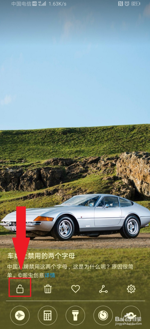 点击锁屏壁纸底部状况栏旁的锁定图标。