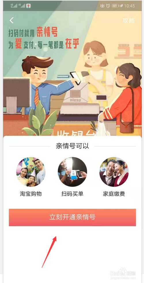 j进入到亲情号页面后,点击当即开通亲情号按钮,然后会跳转到选择关系的页面