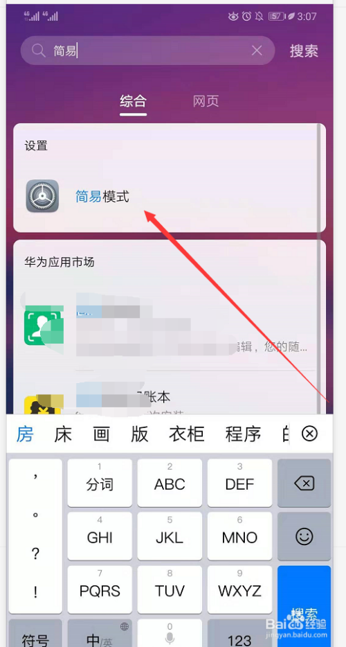 在搜刮栏目中,输入简略单纯模式,可以快速达到设置