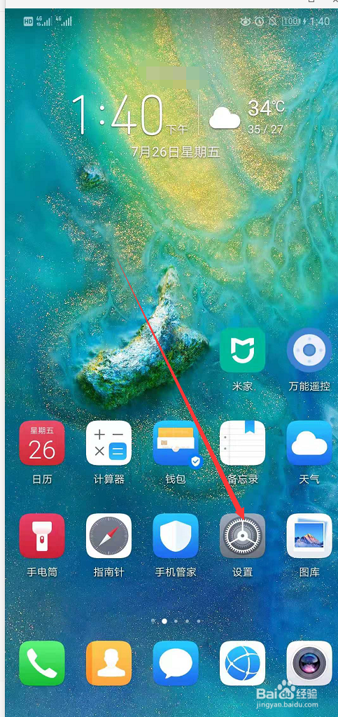 首先进入手机的本家儿页,找到设置app,点击进入,需要智能辅助选项
