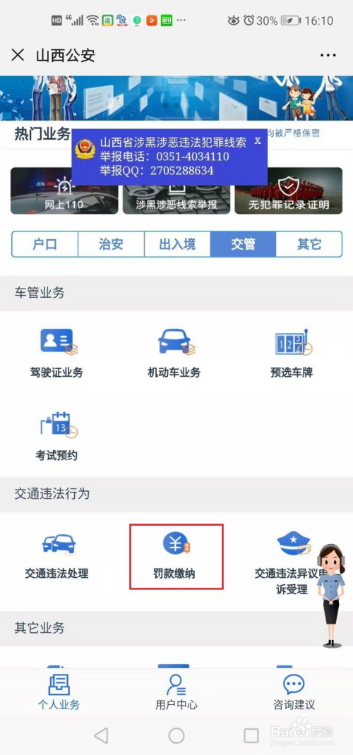 为了晋升处事效率,让数据多跑路,让群众少跑腿,山西公安推出“一网通一次办”平台,对我们公共来说,最常用的功能就是缴纳交通罚条目了。若是你想经由过程微信公家号处置交通违法,那么你就先经由过程平台注册交管12123账号,那么就可以经由过程平台全程打点缴纳罚条目了,具体打点流程如下: