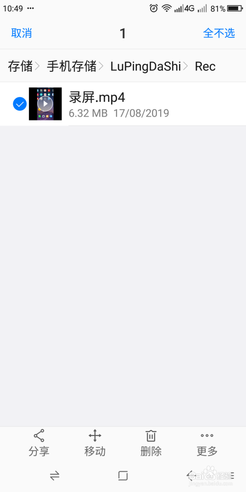 首先我们需要找到保留在手机上的视频地址,在一个名字为“REC”的文件夹中。曾经写过一篇如何寻找录屏巨匠视频的经验,不会找的可以参考一下