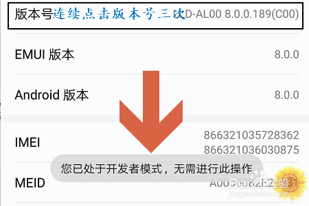 在关于手机页面里,我们找到“版本号”而且快速持续的点击三次以上,这样即可开启开辟人员选项了,不外若是已经开启了,就会弹出下图所示的提醒;