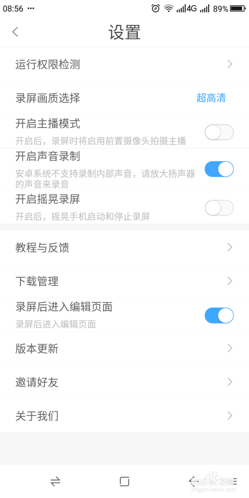 单击“设置”按钮,会进入到设置页面,我们可以在这里进行程序的一些如声音、权限编纂等设置