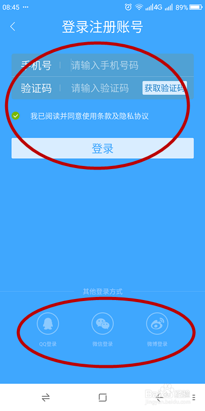 左上角用户信息单击后,是用户注册或者第三方登录界面;靠右一点单击可以进行充值