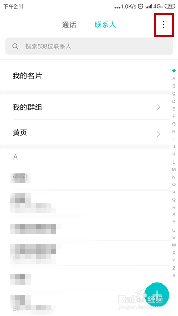 在联系人中只能一个一个删除,批量删除点击右上角三个点。