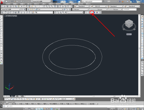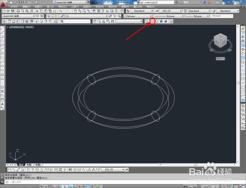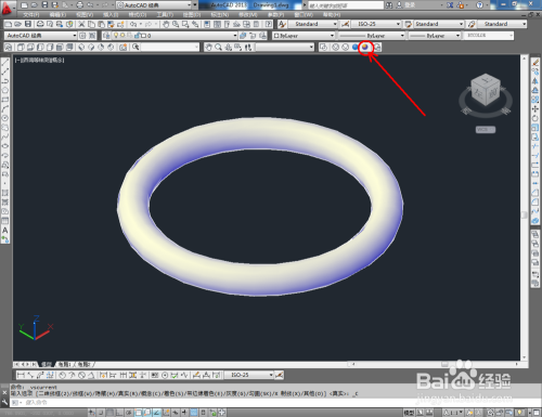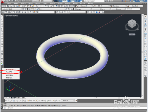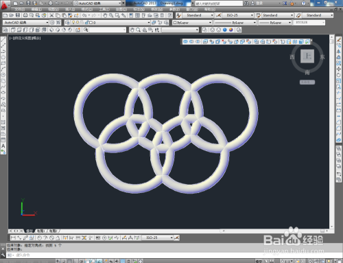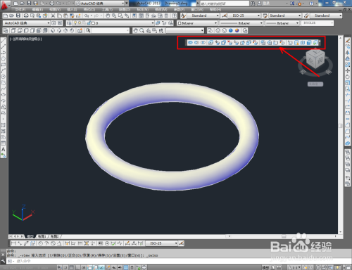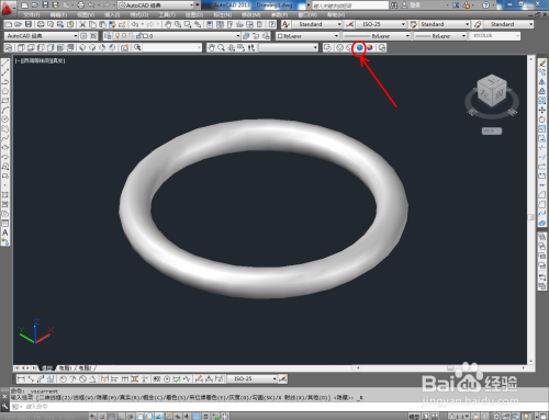 鼠标依次点击视觉样式中的【线框】、【埋没】、【真实】、【概念】图标,可绘制出各类视觉样式的圆环模子(如图所示);