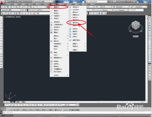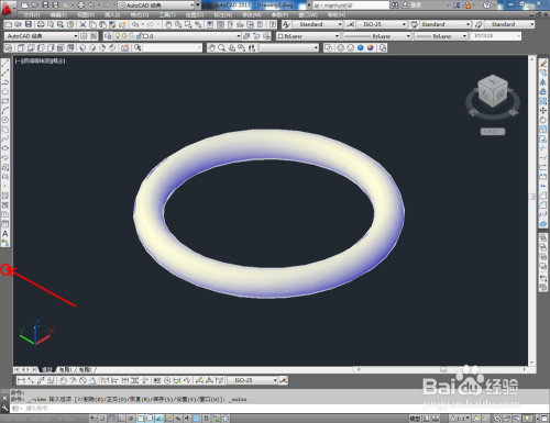 点击视图栏中的【西南等轴测】将视图切换为西南视角后,点击【画图】-【建模】-【圆环】,按图示在作图区域绘制一个圆化(如图所示);