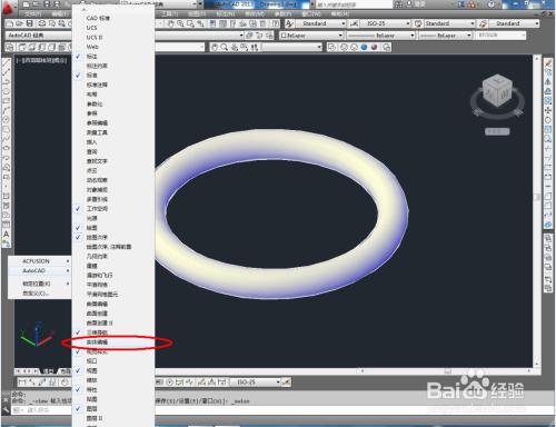 点击【受约束的动态不雅察】,经由过程扭转不雅察圆环体的各个视角。点击鼠标右键-【AutoCAD】,勾选【实体编纂】将实体编纂东西栏调出(如图所示);